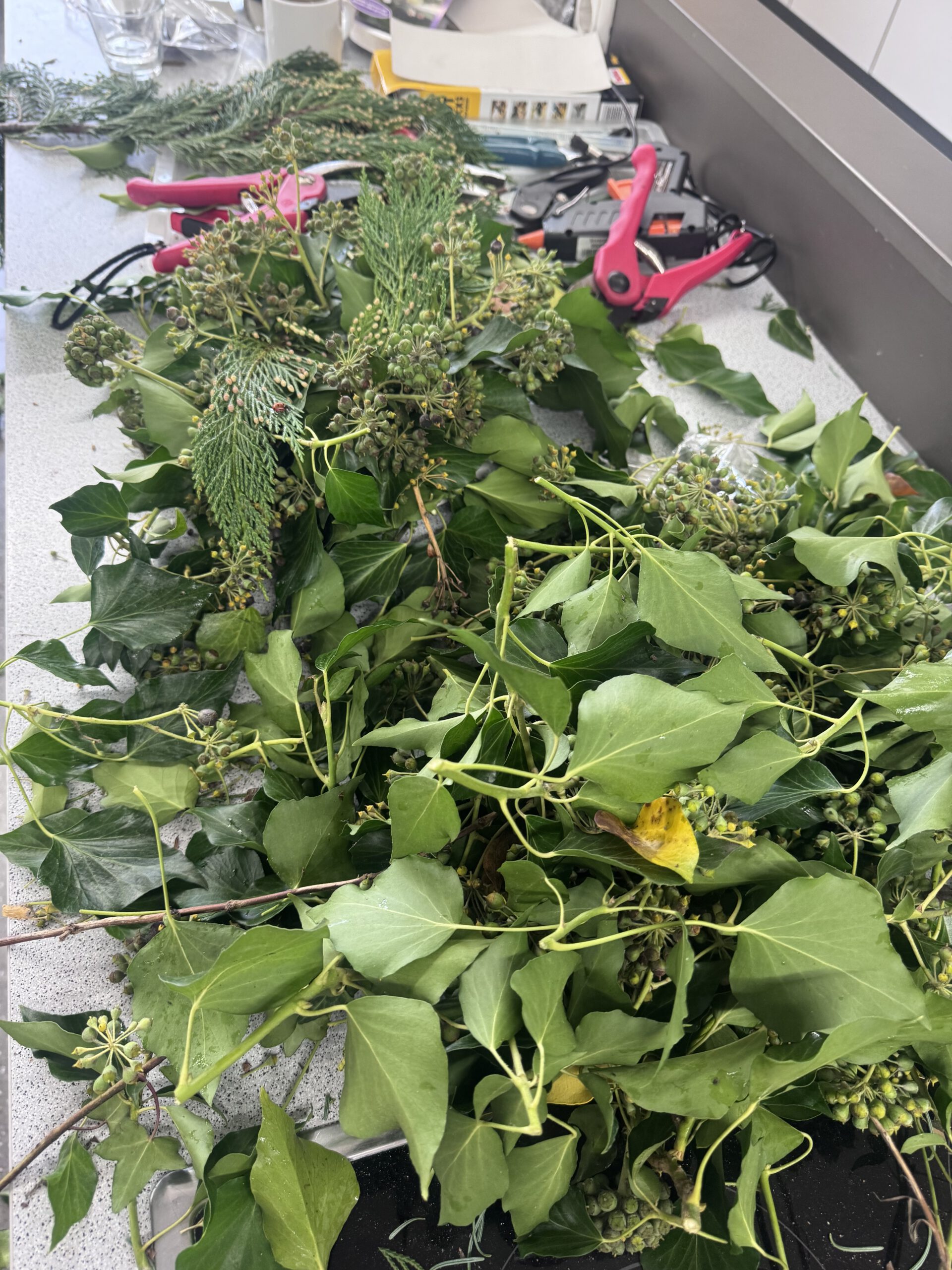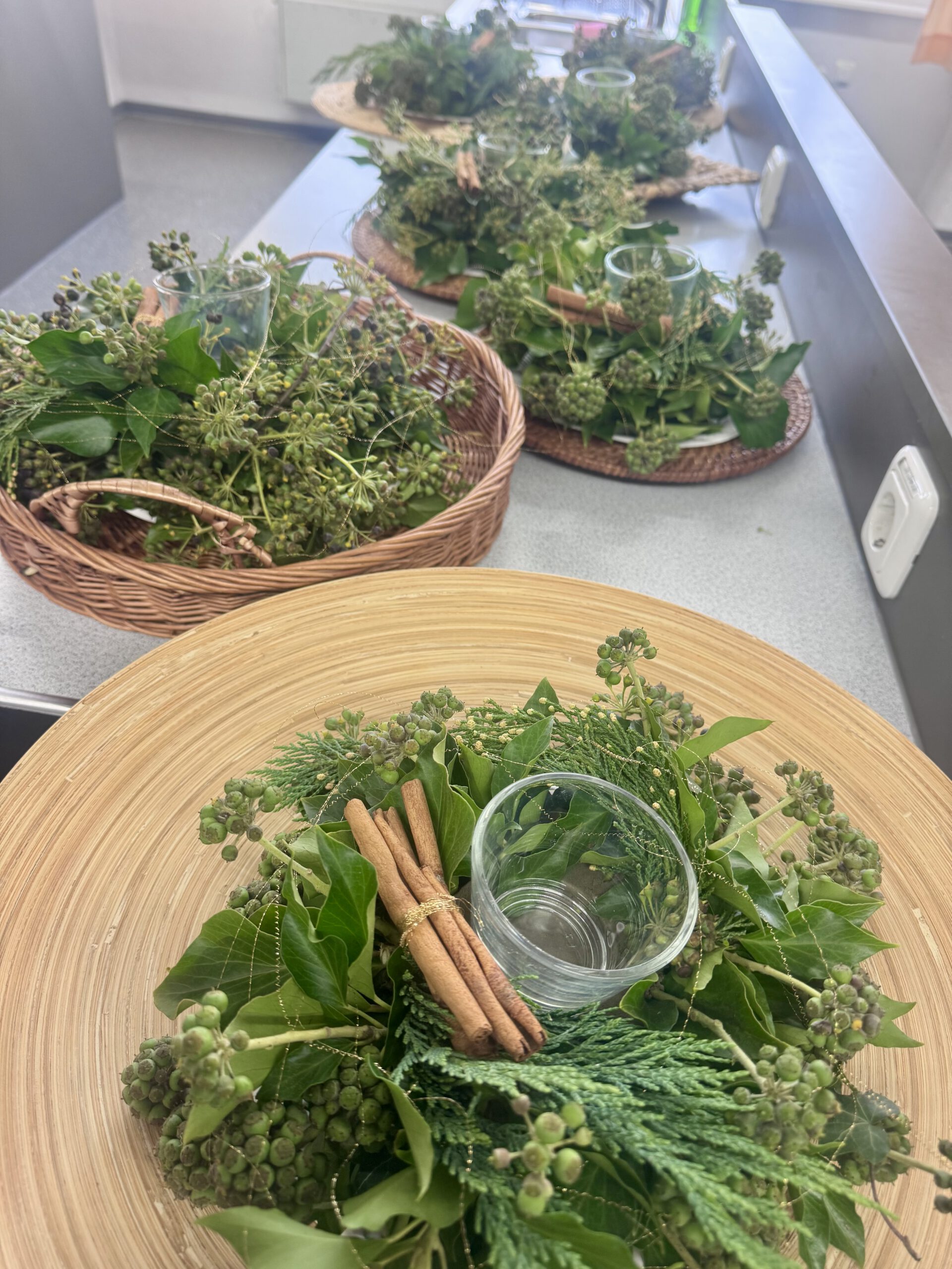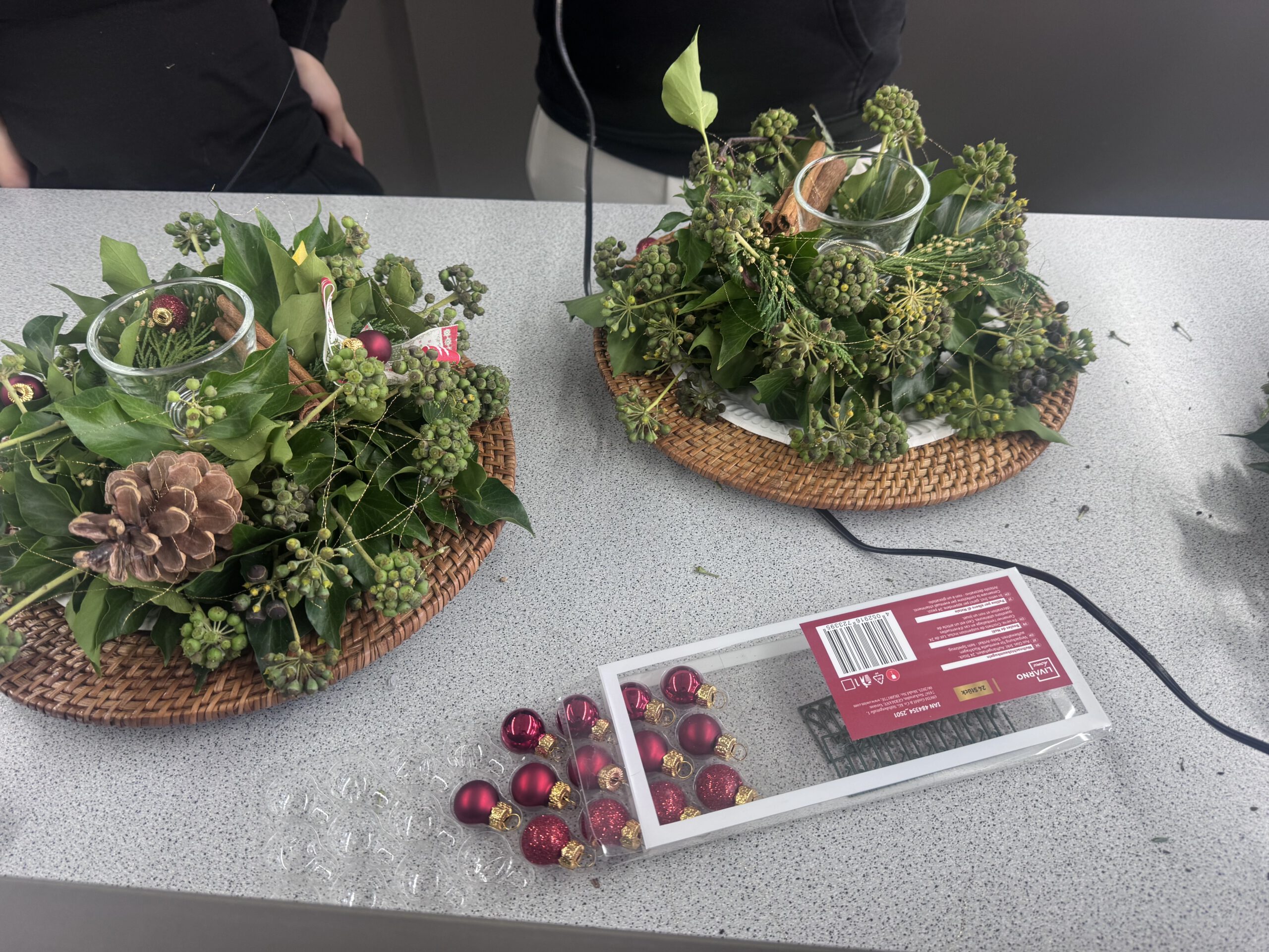 Aus Efeu und Tannengrün entstanden schöne Gestecke und aus alten Büchern wurden Weihnachtsbäume gefaltet – eine tolle Upcycling-Idee!
